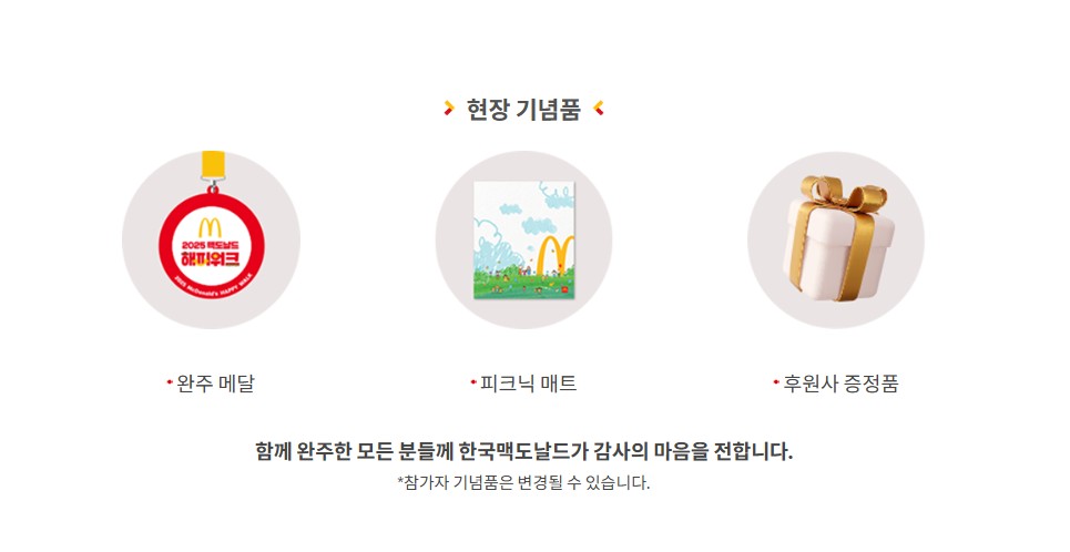 맥도날드 해피워크 2025는 가족과 함께하는 건강한 활동과 나눔의 가치를 동시에 경험할 수 있는 의미 있는 행사입니다. 참가 인원이 5,000명으로 제한되어 있는 만큼, 관심 있는 분들은 서둘러 신청하시기 바랍니다. 5월의 상쾌한 봄날, 가족과 함께 건강한 걷기와 나눔의 기쁨을 동시에 느껴보세요!