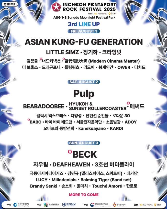 이렇게나 화려한 라인업, 그리고 한여름 밤의 감성이 살아있는 인천 펜타포트 락 페스티벌 2025. 읽고 나니 벌써부터 심장이 두근거리지 않나요? 올해는 꼭 송도에서 그 열기를 함께 느껴보자구요. 여러분은 어떤 아티스트가 가장 기대되시나요? 댓글로 공유해 주세요! 현장에서 만나요!